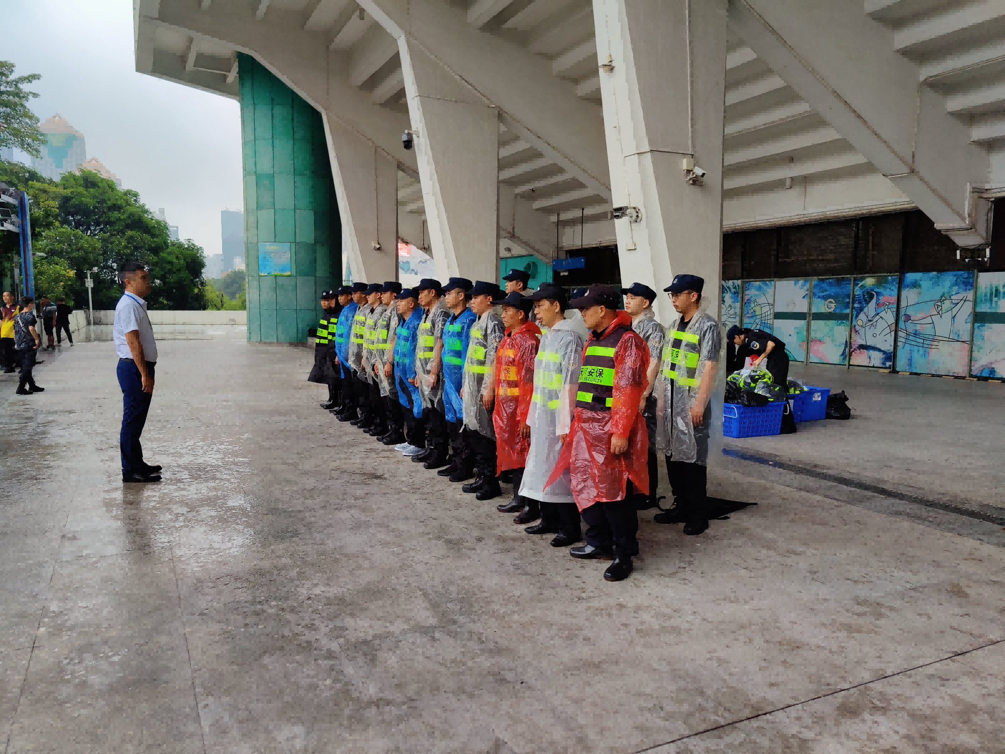 中午12时,部分安保人员提前到场,配合公安机关进行部分区域围蔽调整、现场清理、物质准备等工作。17时,全体安保力量到达现场,按照既定方案,明确区域任务,对接现场管理,再次动员部署,迅速到岗到位。