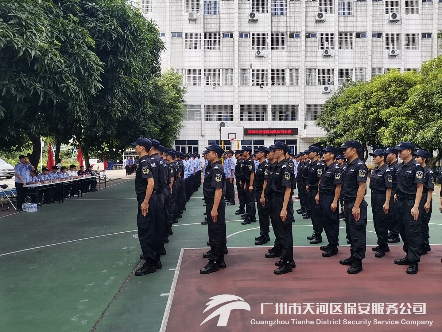 2020年8月26日,天河区公安分局安保机动队与我司机动大队联合开展2020年安保机动队队列会操,并以阅兵分列式为主要内容,检验各中队的训练成果,查找队伍队列训练中的问题,去芜存精、交流共进。