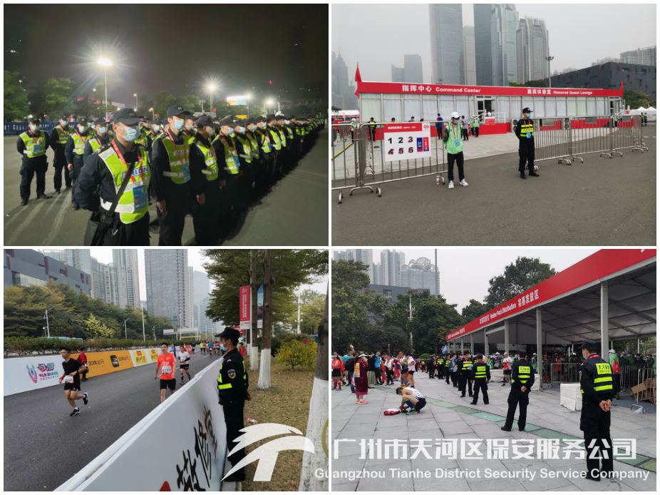 2020广州马拉松赛是由广州市人民政府主办,广州市体育局、越秀区人民政府、海珠区人民政府、荔湾区人民政府、天河区人民政府、广州市体育竞赛中心、广州市田径协会承办的马拉松赛事。今年广马仅设全程马拉松,参赛规模为两万人,比赛路线基本沿用“一江两岸”的路线设置,起点设在天河体育中心,终点设在花城广场,区公安分局领导高度重视,治安大队积极部署、精心组织,制定周密详尽的安保方案,指导我司落实马拉松比赛开展多个区域各项安全保障工作,加强场地巡查监管,确保安保期间无安全事故,顺利为广马的正常进行保驾护航。